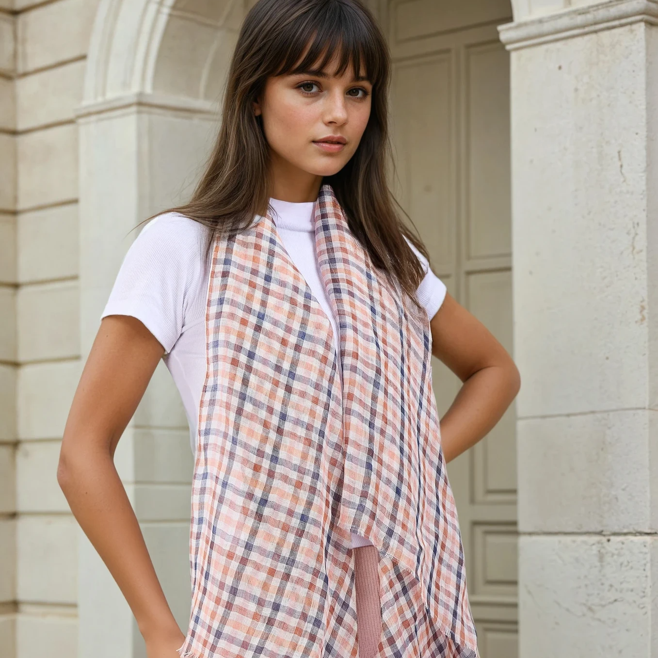 Elevate your style with our linen cotton scarf, crafted from breathable natural fibres. Lightweight yet soft, this versatile accessory adds effortless elegance year-round. Perfect as a summer wrap, travel scarf, or layering piece, it combines durability with timeless charm for everyday wear.