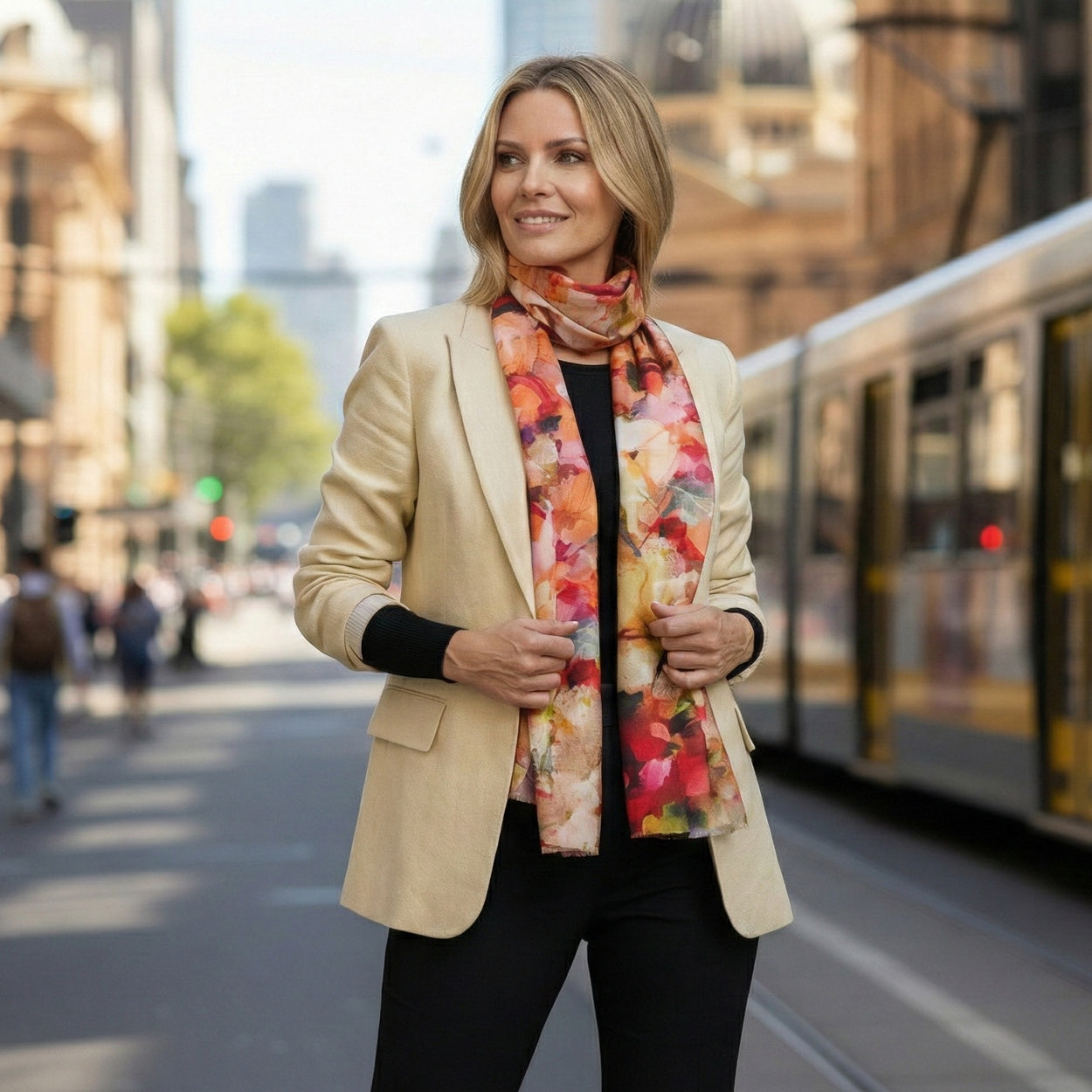 The timeless aesthetic complements both relaxed daytime looks and elegant evening styling. Designed in Australia by The Scarf Company, it combines timeless design with premium craftsmanship.